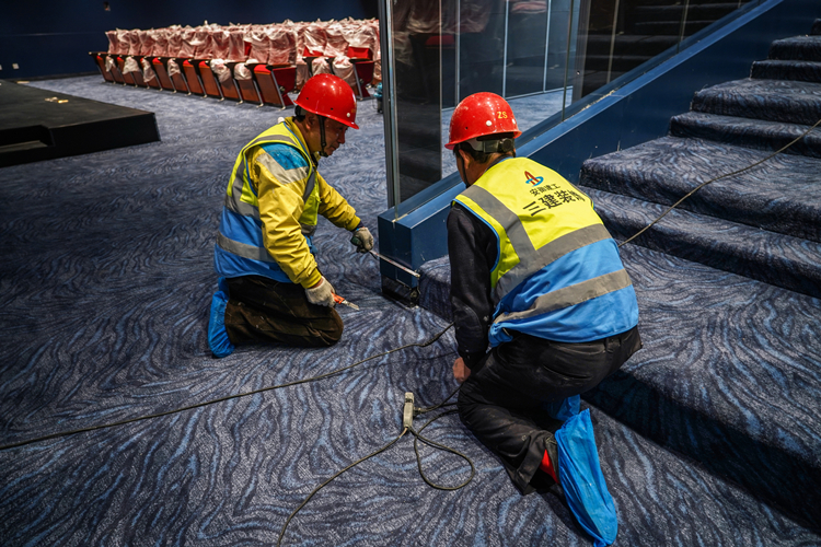 穿上鞋套、精心施工