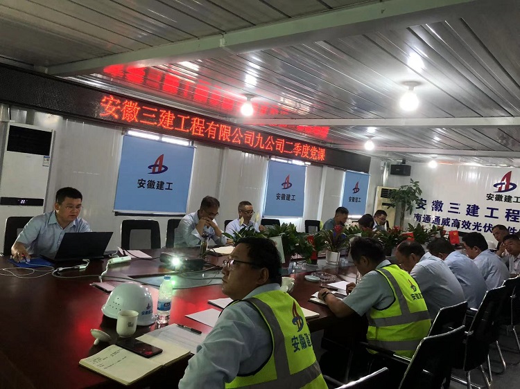 為推動(dòng)學(xué)習(xí)貫徹習(xí)近平新時(shí)代中國(guó)特色社會(huì)主義思想主題教育走深走實(shí),近日,九公司黨支部書記陸軍前往南通通威高效光伏組件制造基地項(xiàng)目開展學(xué)習(xí)貫徹習(xí)近平新時(shí)代中國(guó)特色社會(huì)主義思想主題教育專題黨課。